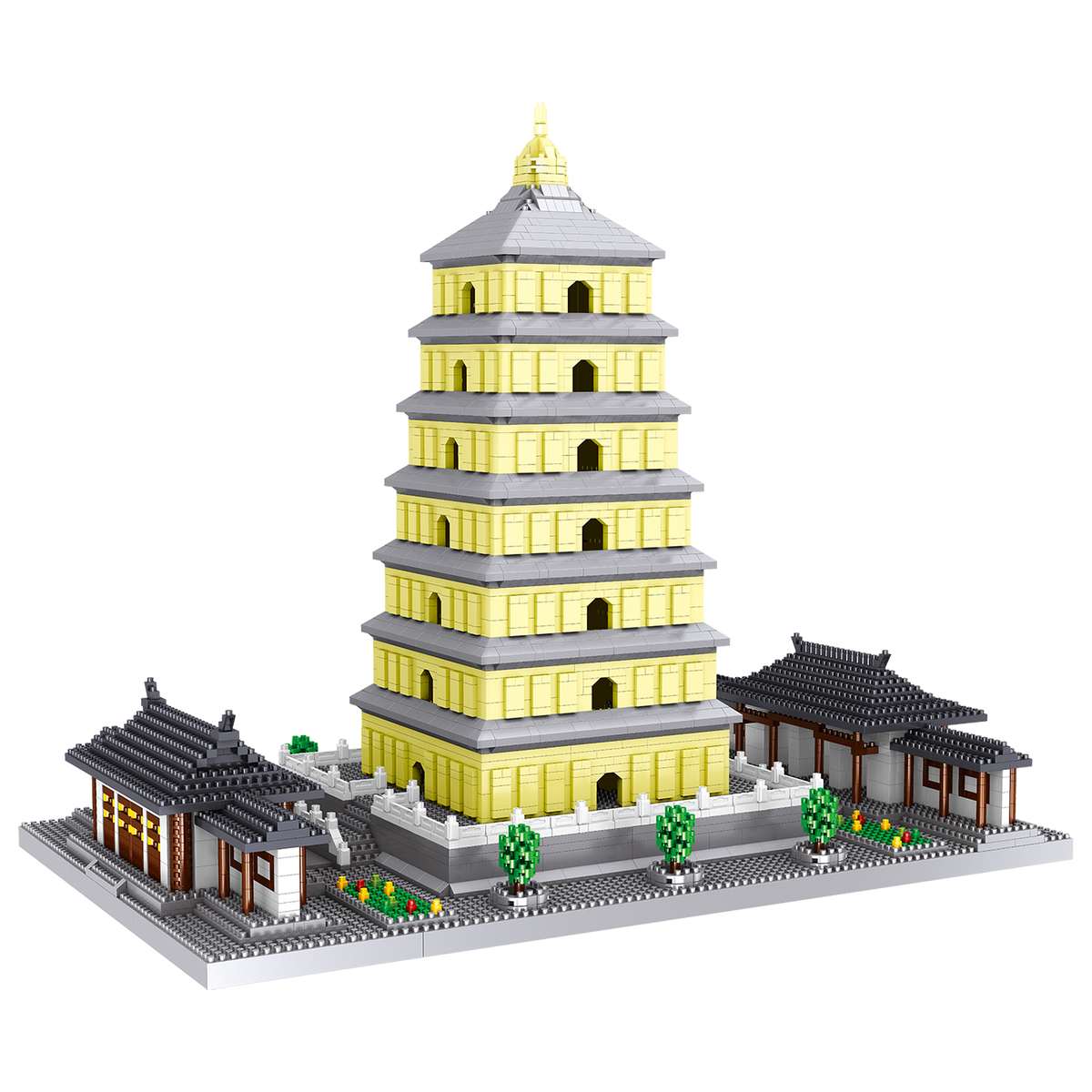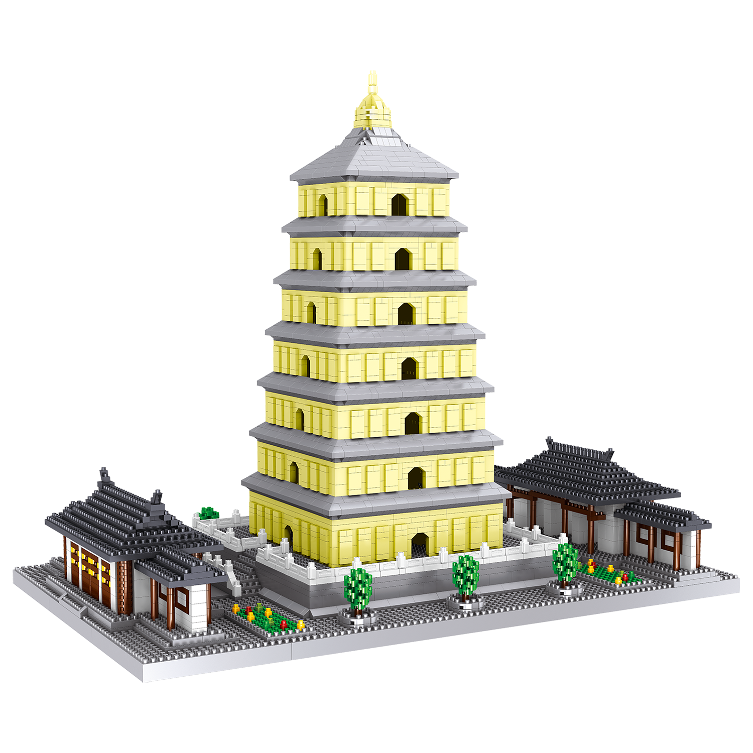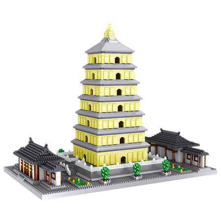 Bausatz 8185 von Lezi stellt einen berühmten Turm in Xi'an, China, dar. Es handelt sich um eine Pagode, also einen Turm mit typischen chinesischen Dächern, die am Ende nach oben gebogen sind. Der Da-Yan-Turm, frei übersetzt “Wilde Schwan-Turm”, hat sieben Stockwerke, die nach oben hin immer kleiner werden. Dieser Turm steht seit 1372 Jahren! Wird Ihr Bausatz für Erwachsene auch so lange halten?