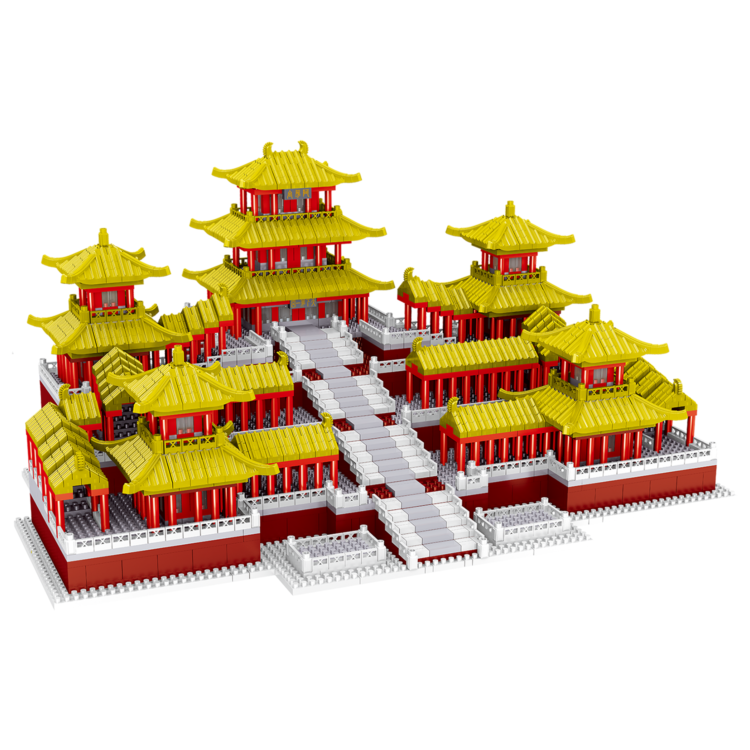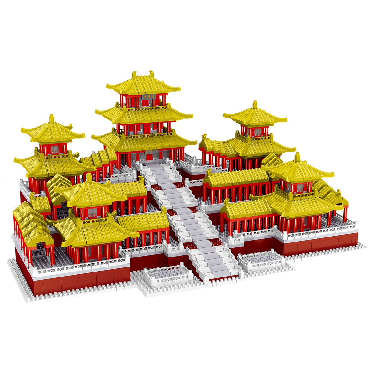 Fünf Etagen hoch wird dieses berühmte Bauwerk, der Epang-Palast, in Ihrem Raum prangen, sobald Sie es aus Nanoblocks gebaut haben. Eine breite Treppe aus weißen und grauen Nanoblocks führt zu dem sechs Etagen hohen roten Hauptgebäude. Über der Treppe erheben sich rote Säulen, die die drei grauen Dächer mit “goldenen” Firsten tragen. Auf beiden Seiten der großen Treppe finden Sie drei exakt symmetrische Gebäude. Überdachte Galerien verbinden diese Gebäude mit dem Hauptgebäude. Möchten Sie mehr wissen? Lesen Sie weiter…