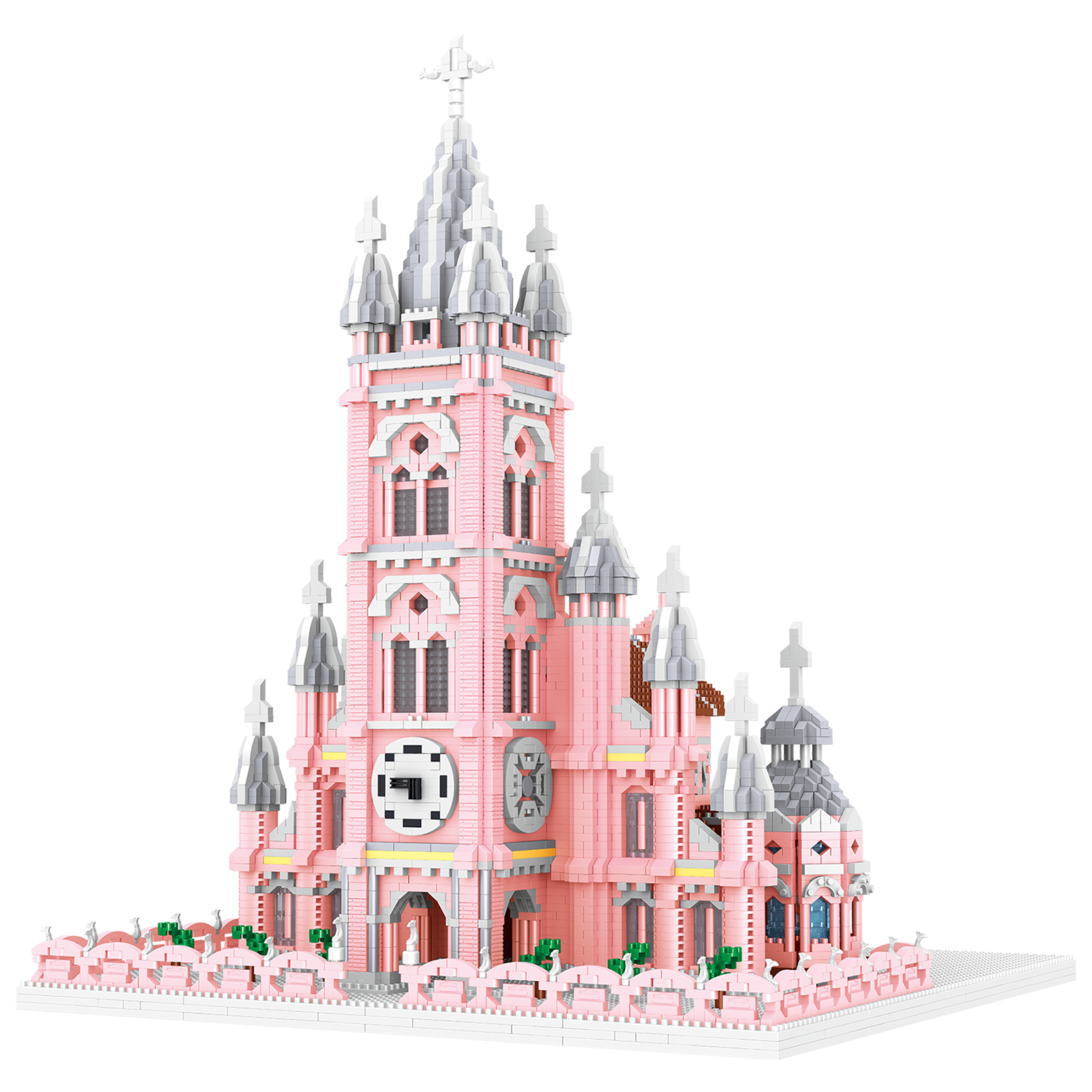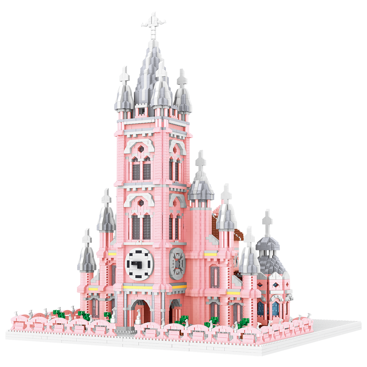 Sie werden sich sicher über die Vorstellung freuen, dass dieses Bau-Set mehr als 7000 Miniblocks umfasst. Bei einem Hobby wie diesem wissen Sie, dass dies nicht in ein paar Stunden fertig sein wird. Die Kirche ist aufgrund der vielen Miniblocks sehr schön detailliert. Sowohl an der Vorder- als auch an der Rückseite werden Sie von der Präzisionsarbeit beeindruckt sein. Die Rückseite hat die schönen, fast bordeauxroten Dächer, die gut mit dem Rosa harmonieren.