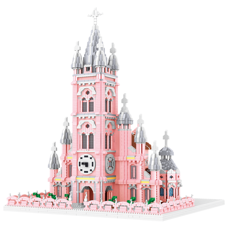Diese rosa Kirche ist eines der Highlights in Ho-Chi-Minh-Stadt, auch bekannt als Saigon. Sie befindet sich in einer belebten Straße mit großen Gebäuden. Ihr Baupaket strahlt hingegen Ruhe aus. Die schönen Zaunfelder aus Minibauklötzen schützen die Bäumchen im Garten rund um die Kirche. Bis zur Kirchturmspitze ist Ihr Bausatz 38 Zentimeter hoch. Möchten Sie noch mehr Kirchen aus Miniblocks für Ihr Hobby bauen? Wir haben zum Beispiel auch die bunte Basilius-Kathedrale in Moskau für Sie in der Kategorie Architektur. Dies ist ein Bausatz für Experten; wenn Sie es lieber einfacher mögen, schauen Sie sich die Sets für Fortgeschrittene an.