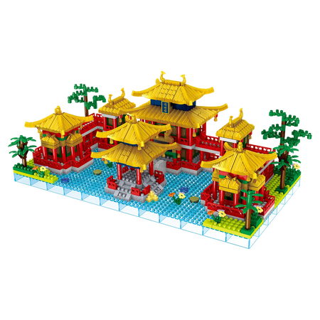 Diese Bausatz von Lezi heißt Yuanmingyuan, was “Alter Sommerpalast” bedeutet. Der Kaiser der Qing-Dynastie hatte hier seine Sommergärten. Es liegt im Nordwesten von Beijing in China und das große Komplex umfasst wunderschöne Landschaftsgärten mit Tempeln, Palästen und üppigen Pavillons. Ihr Erwachsenen-Bausatz zeigt den Teil mit Teichen. Sie können zu den Tempelchen im Wasser über luxuriöse Stege und rote Gehwege gehen. Auch die Säulen dieses markanten Nanoblocks-Gebäudekomplexes sind rot, was schön mit dem Blau des Wassers und dem Gelb der Dächer kontrastiert.