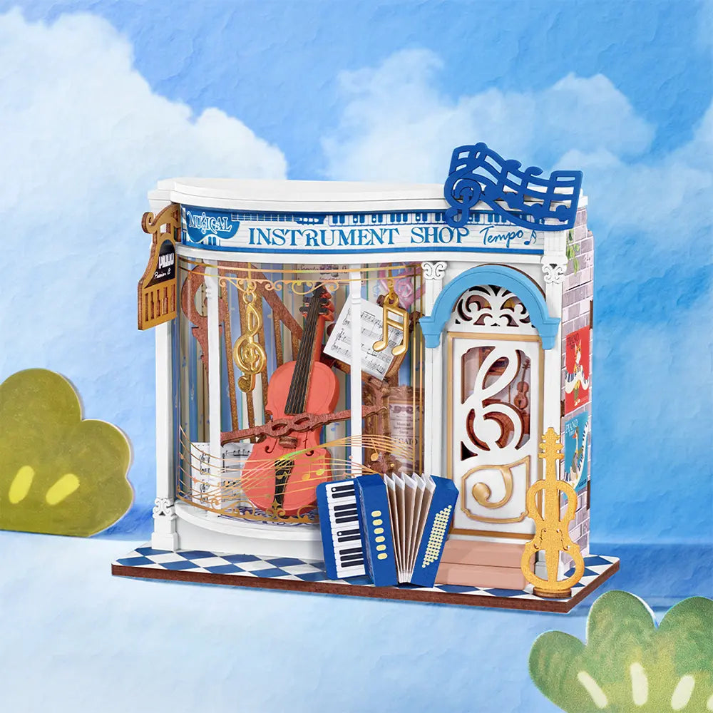 Entdecken Sie eine verspielte, sonnige Welt mit dem Holzbaukasten Rolife Melody Instrument Shop