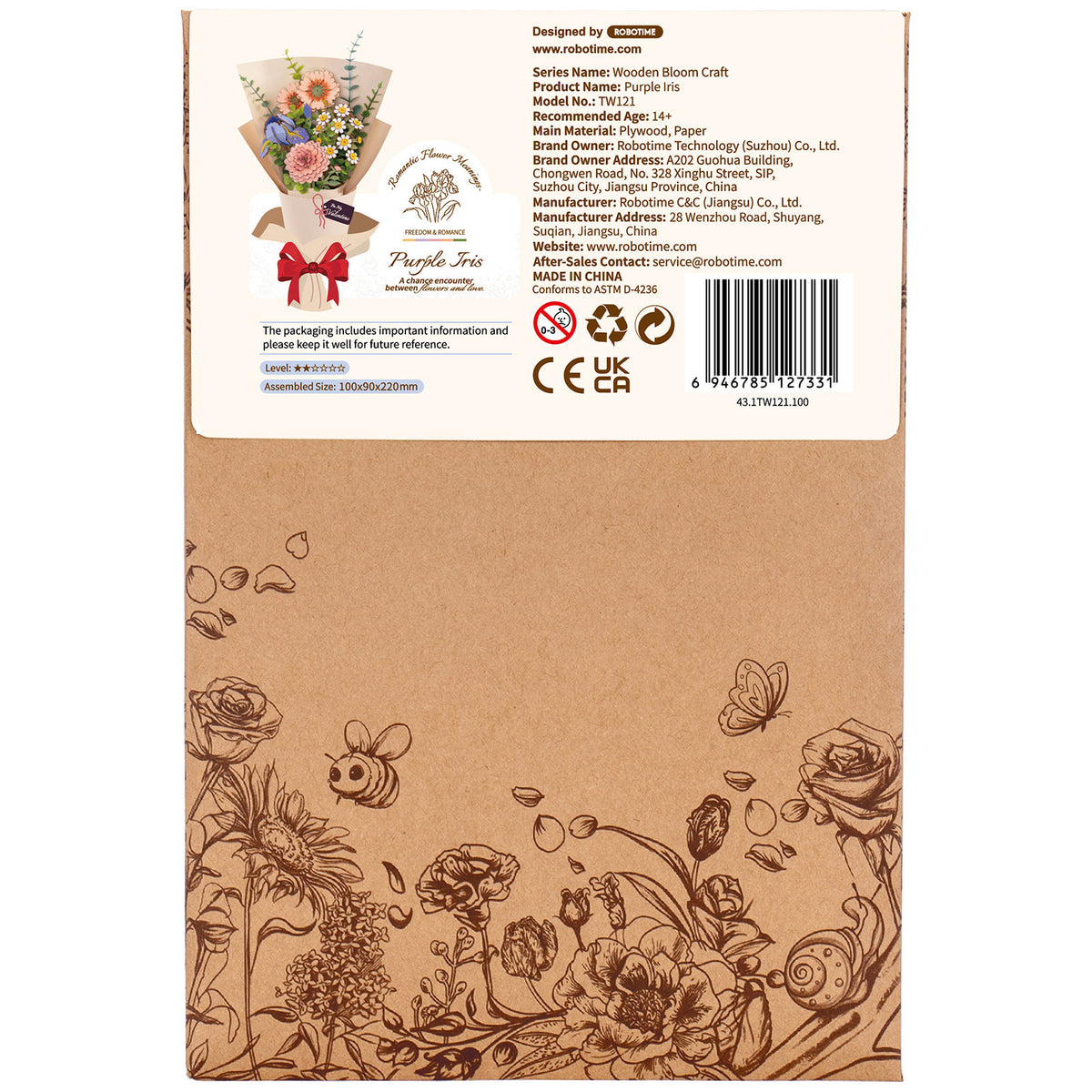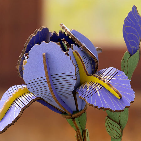 Die violette Iris von Rowood, ein Holzbaukasten und fröhliches Kunstwerk , das jeden Raum zum Strahlen bringt